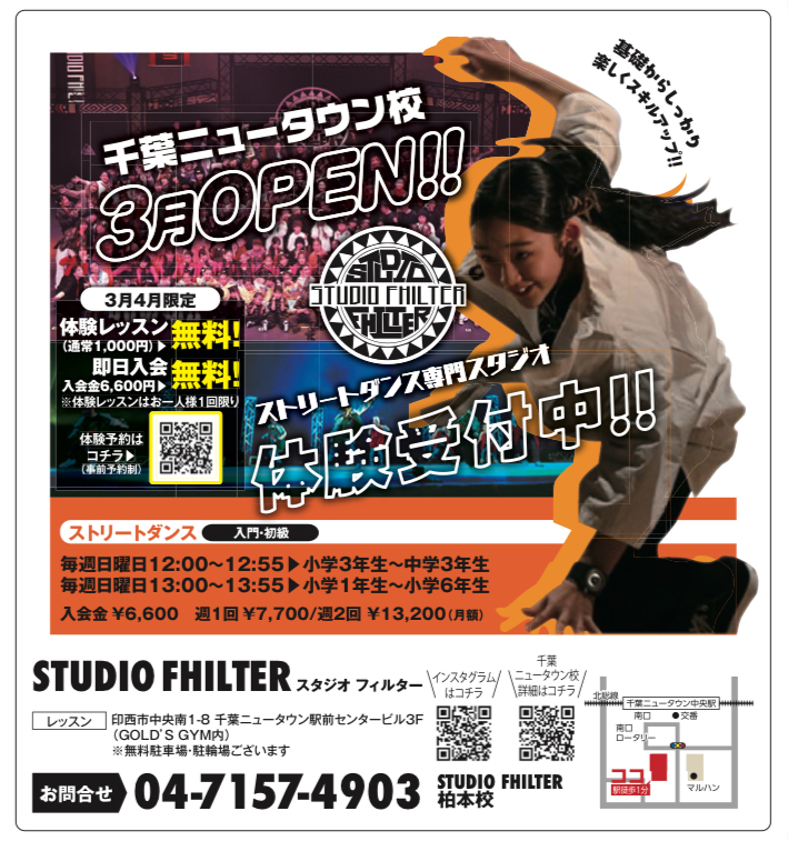 2025年3月より開校致しましたキッズダンス専門スタジオ「STUDIO FHILTER印西千葉ニュータウン校」