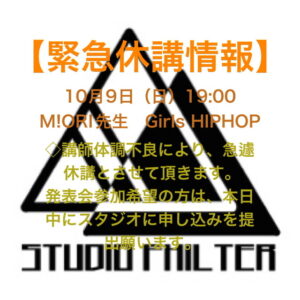 10月9日緊急休講情報~M!ORI先生class~